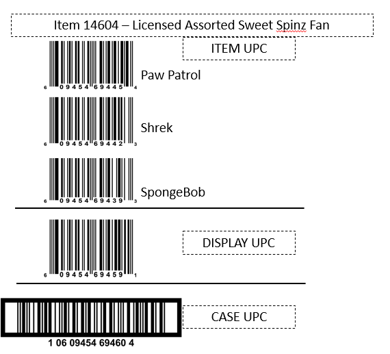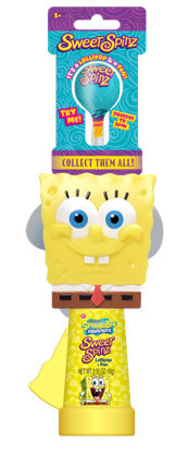 Licensed Assorted Sweet Spinz. Hand activated fans available in Shrek, SpongeBob and Paw Patrol (Chase) characters. Squeeze trigger on handle to activate spinning fan and lollipop functions.