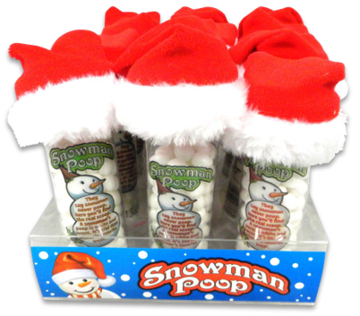 Snowman Poop Candy with Santa Hat 1.5oz. Delicious dextrose snowballs with a plush mini Santa Hat. The perfect Stocking Stuffer item!