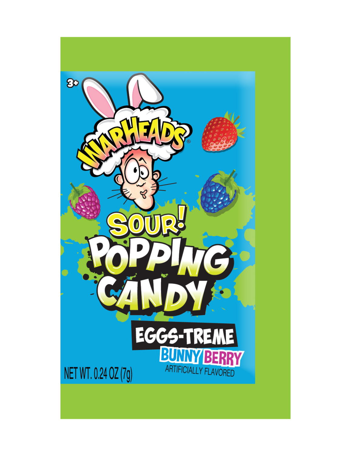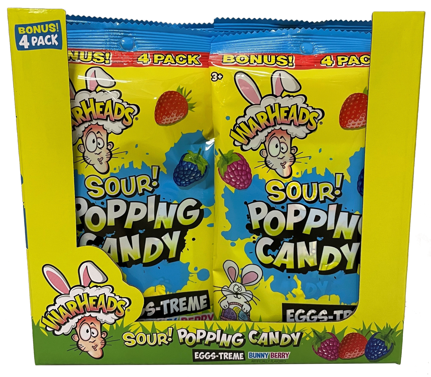 Warheads Easter Sour 4Pk. Popping Candy Peg Bag 0.98oz. Featured in Top Warheads Sour Flavor Bunny Berry! Perfect as an Easter Basket Stuffer.